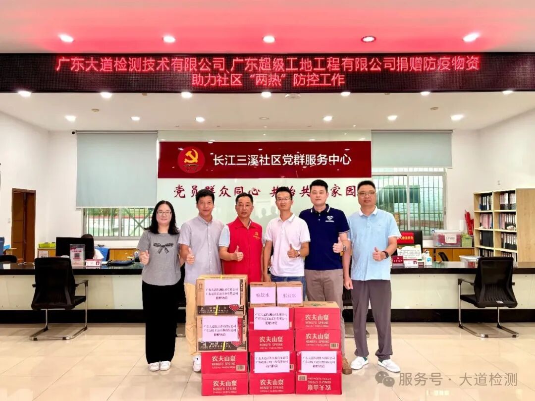 防控正值關鍵期,為積極響應全市“兩熱”疫情防控號召,助力筑牢疫情防控屏障,8月15日,廣東大道檢測技術有限公司攜手廣東超級工地工程有限公司組織開展“攜手防兩熱,同心護健康”活動,向中山市東區街道起灣社區、三溪社區捐贈驅蚊水、殺蟲劑、礦泉水等一批物資,助力社區開展防控“兩熱”工作,共同守護你我健康家園!