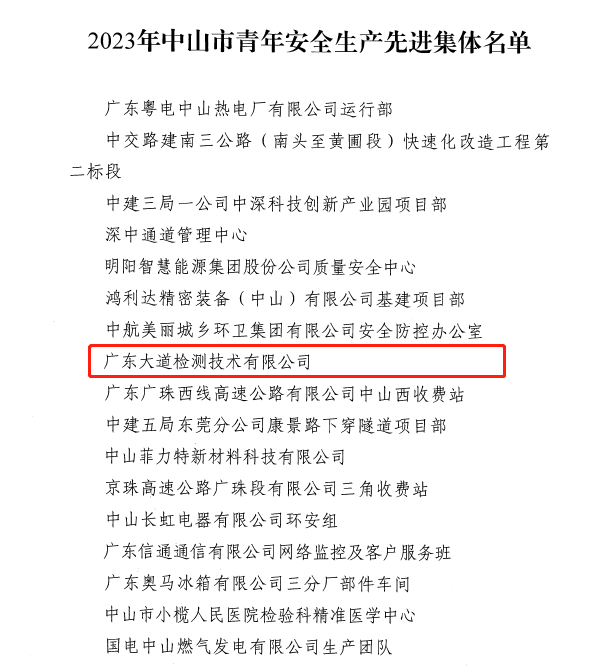 廣東大道檢測技術有限公司榜上有名